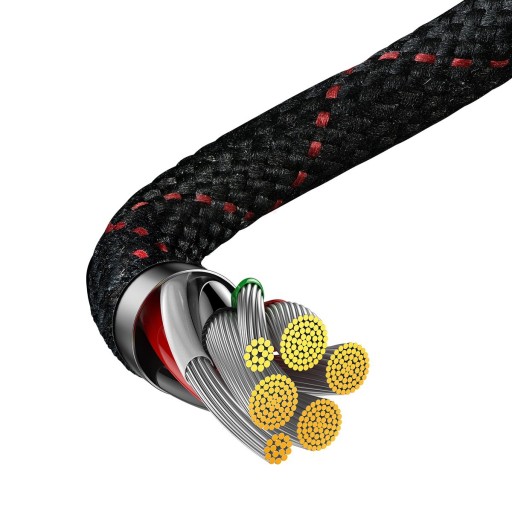Kabel USB z możliwością szybkiego ładowania 100W. Nylonowy oplot kabla sprawia, że jest on przygotowany na bardzo długie użytkowanie. Kabel pozwala na szybkie przesyłanie danych z prędkością do 480Mb/s.