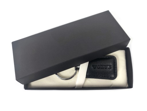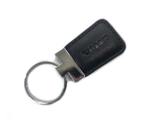 Wysokiej jakości brelok wykonany z metalu i skóry, z wytłoczonym logo marki VOLVO