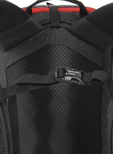 Do stabilizacji plecaka służy pas piersiowy (o regulowanej wysokości) oraz pas biodrowy dostosowany do pojemności plecaka. Same plecy zostały wykonane z pianki i siateczki, które odprowadzają pot w maksymalnie możliwy sposób w tego typu konstrukcjach plecaków technicznych.