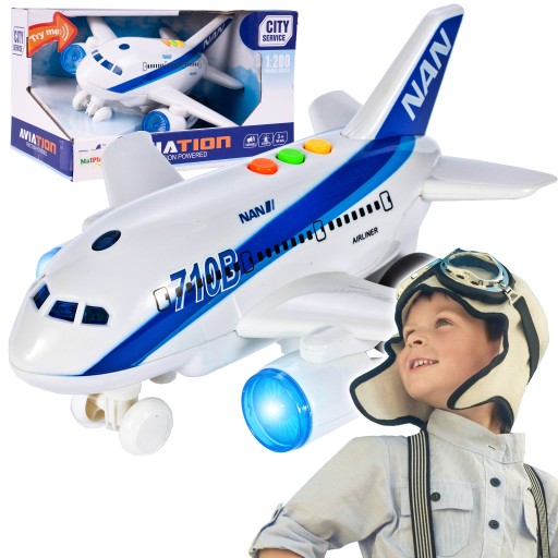 - Zabawka samolot pasażerski wyposażony jest w efekty dźwiękowo świetlne, dzięki czemu zabawa będzie jeszcze bardziej realistyczna.