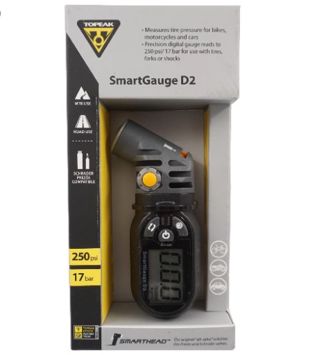 Precyzyjny cyfrowy ciśnieniomierz do kół i amortyzatorów z zakresem do 250 psi. Obrotowa końcówka (180°) SmartHead™ automatycznie dostosowuje się do zaworów Presta i Schrader. Mierzy ciśnienie w oponach rowerów, motocykli i samochodów. Posiada przycisk upuszczający powietrze do precyzyjnej regulacji ciśnienia w oponach.