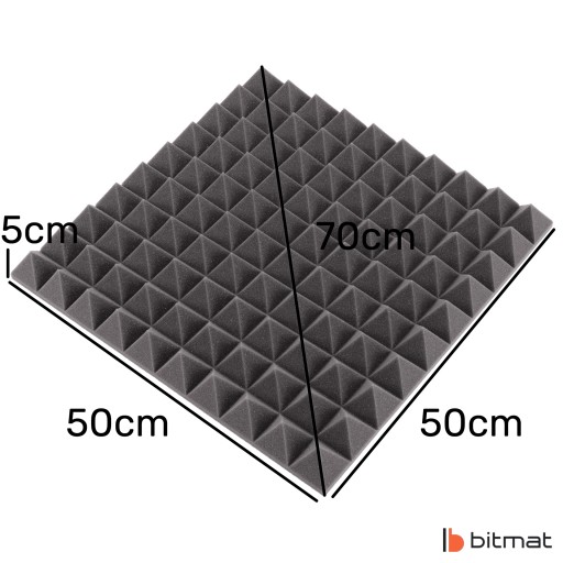 Pianka akustyczna piramidka marki Bitmat zwana także panelem akustycznym jest wykonywana ze spienionego poliuretanu, a jego struktura to otwarte komórki. Zastosowanie odpowiednich stożków doskonale sprawdza się w studiach i pokojach muzycznych/kabinach lektorskich, ponieważ poprawia zrozumiałość mowy i wokalu. Jest to zastosowanie optymalne, które przy stosunkowo niskich kosztach pozwala zapobiegać pogłosowi, poprawia jakość dźwięku w pomieszczeniach mieszkalnych i roboczych, a także tworzy nowoczesny design.