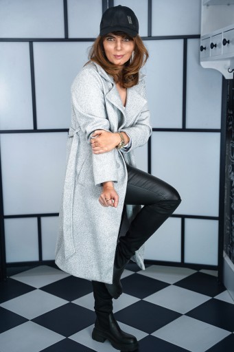 - typ zapięcia: zapinany na guzik oraz przewiązywany paskiem;