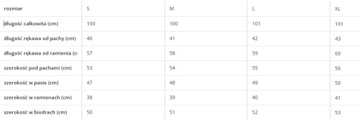 Wymiary płaszczyka znajdziesz w tabeli rozmiarów lub na górze aukcji w parametrach.