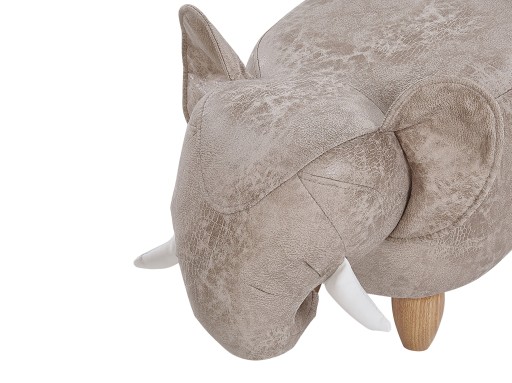 Aby przemienić dziecięcy pokój w safari, wprowadź do niego tę fantastyczną pufę w kształcie słonia. Jak prawdziwe zwierzę ma on duże uszy, zakręconą trąbę oraz kły i jest gotowy, aby odkrywać dziką przyrodę wraz z maluchami. Podnóżek posiada otwór idealny jako schowek na zabawki, który może również służyć za kryjówkę dla kota. Obicie z materiału imitującego skórę jest łatwe w pielęgnacji. Świetny pomysł na prezent dla maluchów i równie atrakcyjna dla starszych dzieci, ta pufa z pewnością stanie się ulubionym meblem w pokoju.