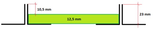 - wysokość wnęki pod płytkę (B): 10,5 mm