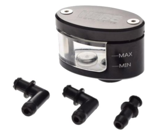 OPIS: ZBIORNICZEK PŁYNU HAMULCOWEGO LUB SPRZĘGŁA WYKONANY Z ALUMINIUM CNC, SZYBKA AKRYLOWA. W ZESTAWIE ZNAJDUJĄ SIĘ 3 KOŃCÓWKI UMOŻLIWIAJĄCE PODŁĄCZENIE WIĘKSZOŚCI PRZEWODÓW. PRODUKT WYSOKIEJ JAKOŚCI MARKI HEBE.