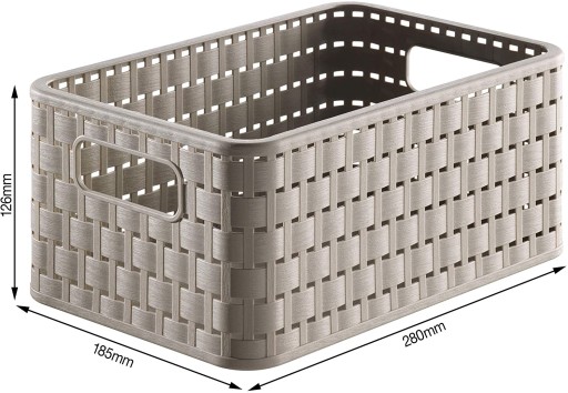 Kosz COUNTRY A5 w kolorze białym o wymiarach 280 x 185 x 126 mm (dł. X szer. X wys.). Charakteryzuje się domowym wyglądem rattanu. Każde plastikowe pudełko nadaje się do życia bez alergii. Prostokątne ozdobne pudełko o pojemności 6,6 litra nadaje się do przechowywania większych i mniejszych przedmiotów. Wytrzymałe kosze COUNTRY można bezpiecznie zamknąć osobno dostępną pokrywą, aby zabezpieczyć przed kurzem. Dzięki szerokiej gamie kolorów dekoracyjne pudełka do przechowywania uzupełniają nowoczesne meble mieszkalne i rustykalne. System organizacji COUNTRY oferuje kosze prostokątne i kwadratowe w rozmiarach: A6, A6 +, A5, A5 +, A4, A4 +. Ładne pudełka w formacie A4 uzupełniają wieżę COUNTRY od Rotho.