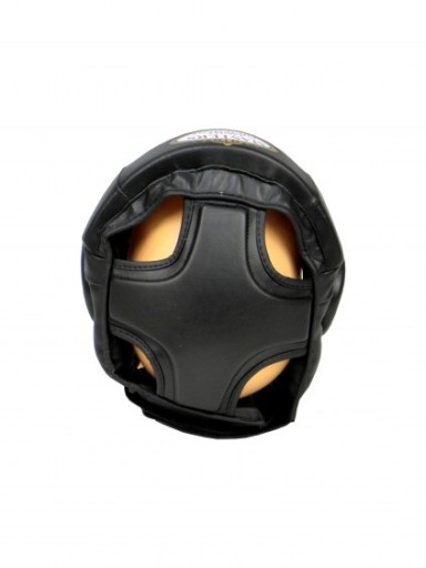 Kask sparingowy KSS-4BP wykonany ze skóry syntetycznej. W pełni zabudowany z ochroną kości policzkowych, brody i górnej cześci głowy.