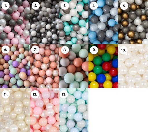 Zestaw kolorystyczny piłeczek do basenu zależy od Ciebie! Proponujemy warianty kolorystyczne: