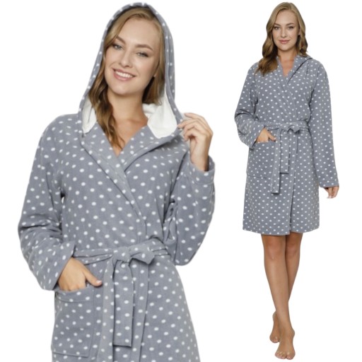 ЖЕНСКИЙ ФЛИСОВЫЙ ХАЛАТ С ТЕПЛЫМ/МЯГКИМ КАПЮШОНОМ