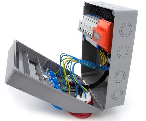 Rozdzielnica budowlana + 16/5 + 32/5 + 4*GS 230V + zabezpieczenia + markowy licznik elektroniczny, certyfikowany MID 3-fazowy