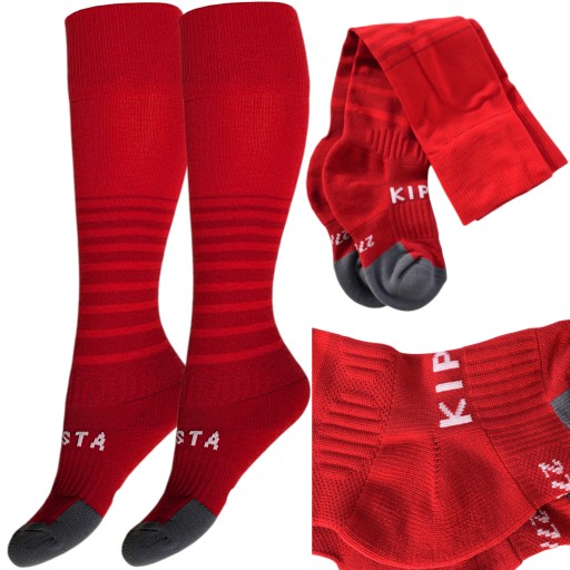 Getry piłkarskie Kipsta grube skarpety do piłki nożnej dla piłkarzy. 1 para w komplecie - czerwone.