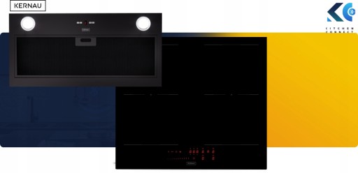Zestaw marki Kernau, z technologia Kitchen Connect, w skład którego wchodzą Płyta indukcyjna KIH 6435-4B BL i Okap podszafkowy KBH 0661 B