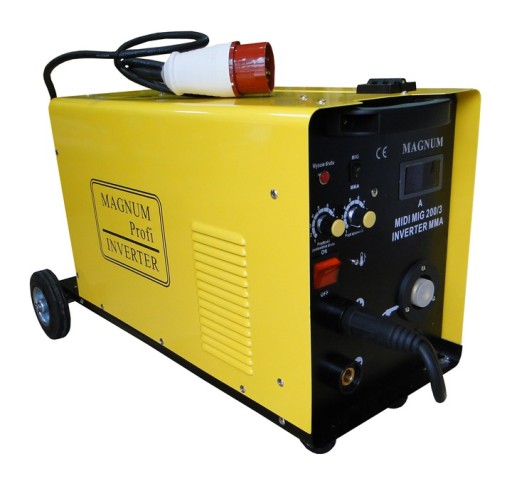 Urządzenie z serii MIDI MIG 210/2 marki MAGNUM jest półautomatem spawalniczym przeznaczonym do ręcznego, elektrycznego spawania stali niskowęglowej, niskostopowej (MAG), stali stopowych (MIG) oraz aluminium i jego stopów.