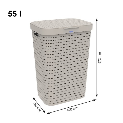 Wybierz swój ulubiony kolor z naszych różnych wariantów kolorystycznych! Ładny pojemnik na pranie COUNTRY mógłby z łatwością uchodzić za dekorację pokoju. Aż trudno uwierzyć, że brudne pranie można tak elegancko zapakować! Kosz na [ranie wykonany z wysokiej jakości tworzywa sztucznego można zamknąć pokrywką dopracowana struktura o wyglądzie rattanu lepsza higiena dzięki cyrkulacji powietrza z 2 praktycznymi uchwytami do przenoszenia Zalety i możliwe zastosowania Dzięki koszowi na pranie COUNTRY góry brudnego prania już nie będą Cię straszyć. Wysokiej jakości kosz o wyglądzie ratanu dyskretnie ukrywa je przed oczami gości, a jego perforowana konstrukcja i otwory w podstawie zapewniają stałą wentylację. W ten sposób nieprzyjemne zapachy nie powstają, nawet przy wilgotnym praniu Dzięki dwóm uchwytom po bokach kosz jest łatwy w transporcie, nawet gdy jest pełny - nawet jeśli musisz z nim przejść przez wąskie drzwi lub klatki schodowe. Wysoki, smukły kształt jest również idealny, gdy przestrzeń w łazience jest ograniczona. Szeroki otwór ułatwia napełnianie i opróżnianie pojemnika na pranie. Oczywiście stylowy kosz o wyglądzie rattanu nadaje się nie tylko na brudne pranie, ale także na zabawki i inne artykuły w gospodarstwie domowym.