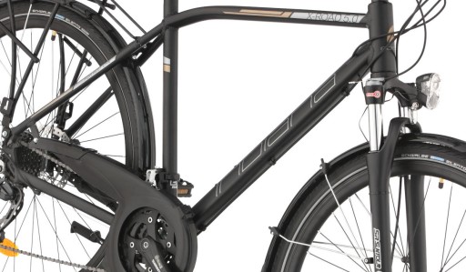 Pojazd posiada duże 28-calowe koła oraz opony marki Schwalbe, które świetnie sprawdzą się podczas jazdy po różnego rodzaju drogach. Większe koła dużo lepiej radzą sobie z zagłębieniami i nierównościami terenu, więc sprawnie pokonasz niespodziewane przeszkody!