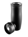Plastikowa pokrywka z gwintem i uszczelką zapewnia szczelne zamknięcie. Pokrywka posiada wygodny przycisk, który umożliwia kliknięciem jednym palcem otwarcie i zamknięcie kubka.