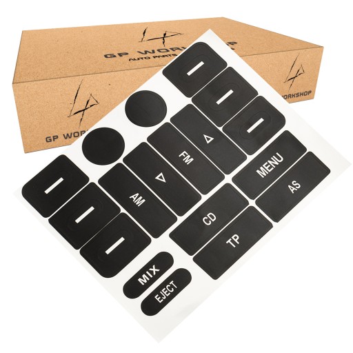 - Gotowy do montażu - naklejki posiadają naniesioną błonę klejącą, dzięki czemu wystarczy je odkleić i przykleić w wybranym miejscu na panelu radia