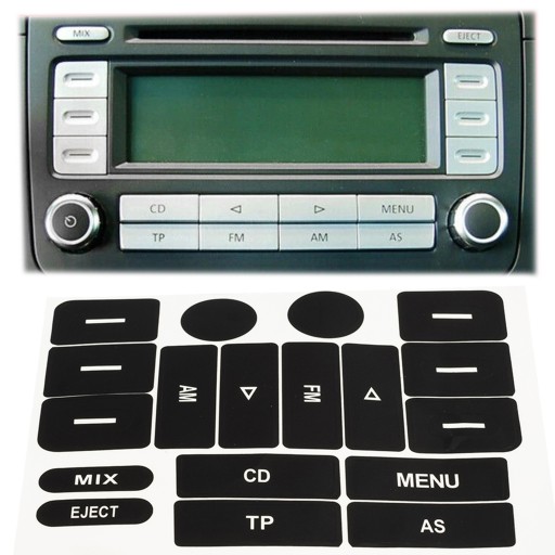 - Pasują do panelu widocznego na zdjęciu - naklejki dostępne w tej ofercie pasują do wzoru panelu radia widocznego na zdjęciu. Jeśli w Twoim samochodzie jest inny panel radia, naklejki mogą nie pasować.