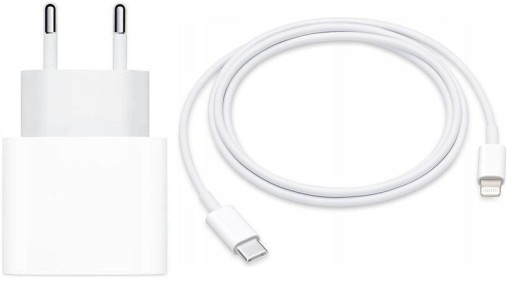 ✅Szybka Ładowarka sieciowa do iPhone USB Typ C 20W (USB-C) Szybkie ładowanie + Kabel Lightning 1m - USB-C
