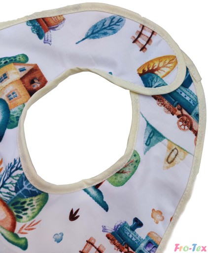 Pod spodem śliniaczka znajduje się wodoodporna tkanina która zapobiegnie przemakaniu jedzenia.
