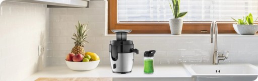 - Funkcje: Możliwość mycia elementów w zmywarce, Wyjmowany zbiornik na miąższ, Pojemnik na sok