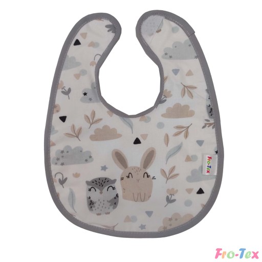 Pod spodem śliniaczka znajduje się wodoodporna tkanina która zapobiegnie przemakaniu jedzenia.