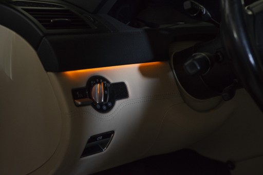- Dzięki niewielkim wymiarom taśmę LED można bez problemu zamontować w dowolnym rowku kokpitu, w drzwiach, pod siedzeniami itp.