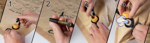 3️⃣ Chwyć za uchwyt, przyłóż końcówkę do zaworu i napompuj worek