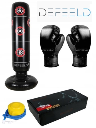- W zestawie worek treningowy, rękawice, pompka, kartonik, łatka naprawcza