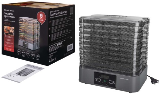 W opakowaniu oprócz suszarki do grzybów GÖTZE & JENSEN FD800 znajdziesz instrukcję obsługi w języku polskim z warunkami gwarancji.