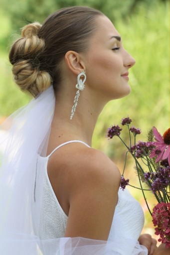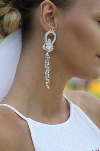 СВАДЕБНЫЕ СУТАЖНЫЕ СЕРЬГИ, СЕРЕБРО ЭКрю, ДЛИННЫЕ СЛЕЗЫ