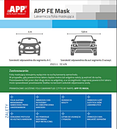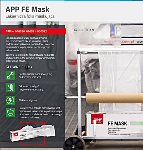 APP FE Mask jest elektrostatyczną, polietylenową, lakierniczą folią maskującą o wysokiej gęstości (HDPE - High Density PE).