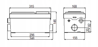 POMPA SANITARNA WATERMAN MINI jest dedykowana do łazienek. Małe wymiary pompy pozwalają na umieszczenie urządzenia pod wanną, wysokim brodzikiem lub w małej szafce pod umywalką. Pompa charakteryzuje się krótkim czasem załączania jak również jego drugie wejście pozwala na zamontowanie bidetu lub umywalki. Nie stosujemy do współpracy ze zlewozmywakiem ze względu na brak rozdrabniacza. Absolutna nowość na Polskim rynku. Ta pompa nie ma absolutnie ŻADNEJ konkurencji w swojej klasie . Pompy gdzie praca jest sterowana membraną ulegają uszkodzeniom bardzo szybko! Rewelacyjna pompa o mocy 300 W, która została wykonana z najwyższej jakości materiałów, a także zgodnie z filozofią Product Better - Life Better. Jest to model pompy, której obudowa silnika wykonana jest z certyfikowanej stali nierdzewnej, która jednocześnie odpowiedzialna jest za odprowadzanie ciepła z silnika - Cooling Housign Architecture.\nAutomatycznie włączający pracę pompy pływak załącza się gdy poziom wody w pompie osiągnie minimalnie 55 mm, a wyłączy w chwili spadku wody do poziomu 25 mm.