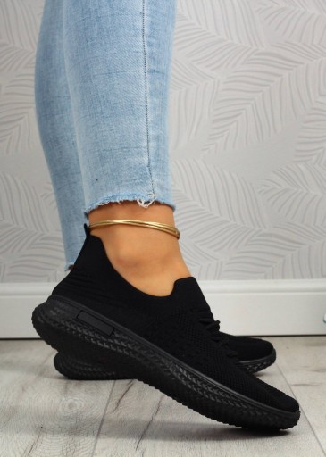 Damskie wsuwane buty sportowe w kolorze czarnym z przewiewnej siateczki. Sprawdzą się jako obuwie codzienne oraz sportowe. Są lekkie i zapewniają wygodę oraz komfort użytkowania. Podeszwa dobrze amortyzuje stopę. Wykończenie w formie ściągacza, materiał elastyczny.