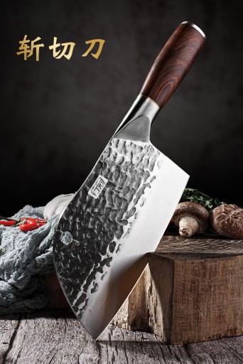 Ostrze noża wykonane ze stali nierdzewnej 5CR13MOV w procesie wielokrotnego hartowania, odpuszczania i kucia charakteryzuje się wyjątkową trwałością. Wgłębienia na powierzchni ostrza zapobiegają przywieraniu, przez co cięcie staje się łatwiejsze i bardziej precyzyjne. Ostrzone i polerowane przez doświadczonych rzemieślników nadają się do cięcia, krojenia, szatkowania mięsa, drobiu, ryb, warzyw i owoców.