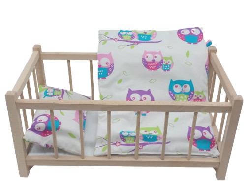 ДЕРЕВЯННАЯ КРОВАТЬ ДЛЯ КУКЛ КУКЛЫ+ПОСТЕЛЬНОЕ 3 ЕЛ