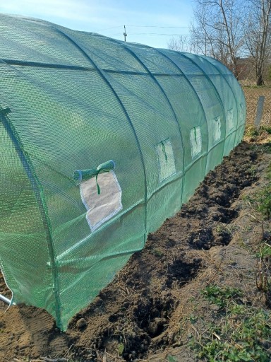 - Zalecamy kotwienie poprzez okopanie tunelu i zakopanie folii