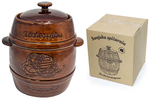 Beczka cechuje się wysoką jakością wykonania oraz przystępną ceną. Użyta kamionka szkliwiona jest odporna na uszkodzenia i stłuczenia. A do tego świetnie się prezentuje. Będzie ozdobą każdej kuchni.