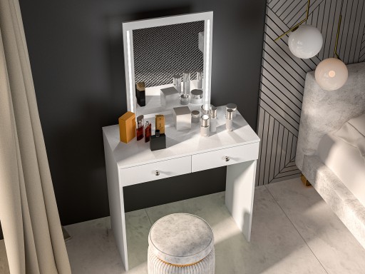 Elegancka, biała toaletka w stylu glamour pozwala stworzyć komfortowe miejsce do makijażu lub może pełnić funkcję konsoli w pokoju młodej damy.