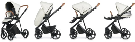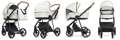 Lekki aluminiowy stelaż, komfortowe zawieszenie. Amortyzator z dwustopniową regulacją twardości, spora rozpiętość regulacji sprawia, że wózek dostosowany jest dobrze do bezdroży jak i gładkich powierzchni. Przednie koła obrotowe z możliwością blokady, system Anti Shock, system stabilizacji kół obrotowych. Bezobsługowe, bezdętkowe koła zapewniają płynne prowadzenie. Centralny hamulec. Szybki i prosty system składania ramy do małych rozmiarów. Możliwość zdjęcia kół z osią, co redukuje szerokość stelaża po złożeniu. Kosz na zakupy z możliwością powiększenia, z szybkim i łatwym dostępem do wnętrza dzięki zapięciom na magnes. Regulowana rączka obszyta eko-skórą. Łatwy i wygodny system „Click” przy montażu gondoli, spacerówki i fotelika. Gondola o ergonomicznych kształtach, składana na płasko, co znacznie ułatwia transport czy przechowywanie. Innowacyjny system szybkiego składania gondoli. Osłonka na nóżki z okienkiem oraz magnesami ułatwiającymi użytkowanie. Naturalne , bawełniane wnętrze. Wentylacja gondoli. Okienko z moskitierą zarówno w budce jak i gondoli – otwarta wersja letnia. Uchwyt do przenoszenia gondoli. Blenda przeciwsłoneczna UV 50. Lekka, kompaktowa spacerówka, składana razem ze stelażem. Możliwość montażu spacerówki przodem lub tyłem do kierunku jazdy. Materacyk z ekologicznej bambusowej tkaniny o właściwościach antybakteryjnych, termicznych , chłodzi latem, zimą ociepla. Przedłużana budka z okienkiem wentylacyjnym, pięciopunktowe pasy bezpieczeństwa z regulacją wysokości, regulowane oparcie do pozycji leżącej, regulowany podnóżek. Odpinana barierka, obszyta eko-skórą. Osłonka na nóżki. Używamy wysokogatunkowych certyfikowanych tkanin.
