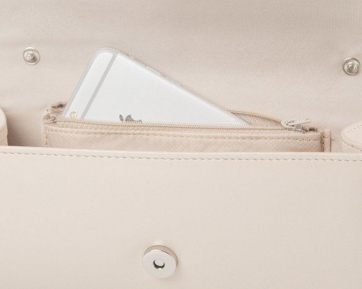 Dzięki dopinanemu paskowi sprawdzi się również jako torebka na ramię. Wewnątrz posiada jedną komorę oraz małą kieszonkę zapinaną na zamek. Magnetyczne zapięcie na klips sprawia, że otwiera i zamyka się w łatwy i przyjemny sposób.
