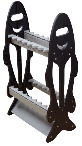 Wykonany z plastiku lekki stojak na 16 wędek, do samodzielnego montażu