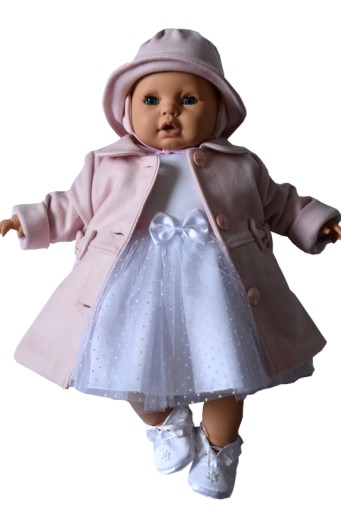 PŁASZCZ Z FLAUSZU + kapelusz do chrztu, - rozmiar 68