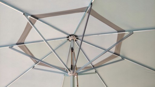 - Wywietrznik ( Komin ) , znajdujący się na górze plandeki zapewnia stabilność parasola przy dużym wietrze