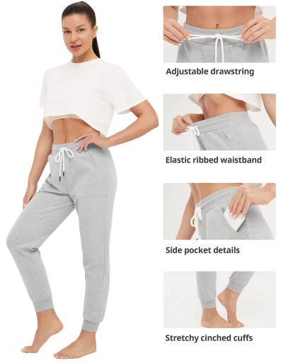 - Gumowy pasek: spodnie treningowe dla kobiet są wygodne dzięki gumowemu ściągaczowi i ściągaczom na nogawce. Nic się nie ześlizgują.