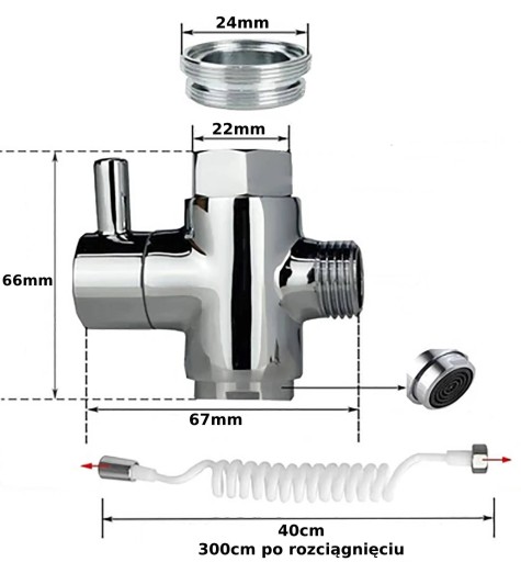 - Długi rozciągliwy wąż, który ułatwia mycie w umywalce