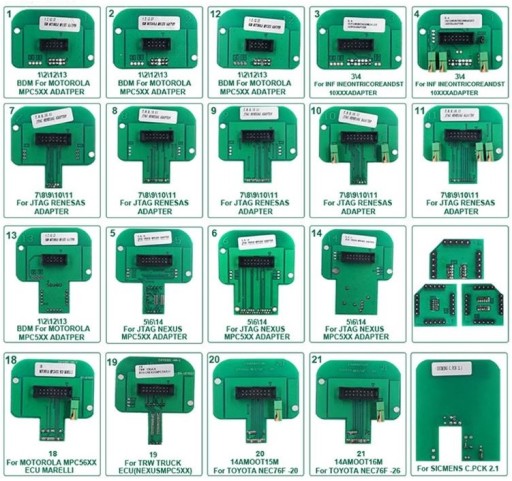 Zestaw 22 sztuk adapterów BDM przeznaczonych do chiptuningu BDM100, GALLETTO, K-TAG