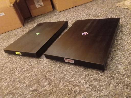 Mogą być takie same lub mieć różne wymiary. Np. jedna 30x25,5 cm druga 39,5x29 cm. Jedna np. na zasilacz druga na preamp.